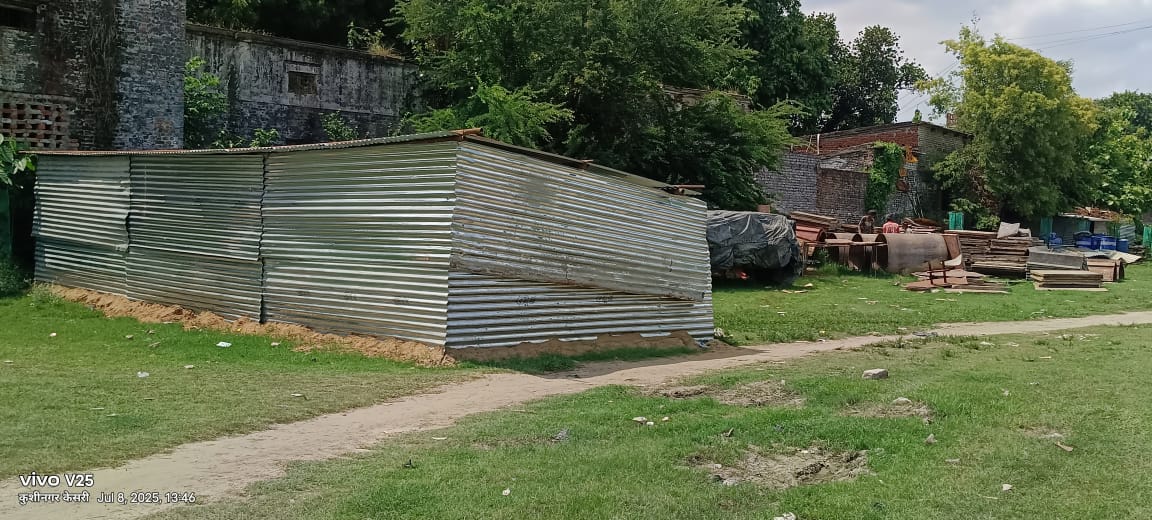 कुशीनगर। जनपद के कप्तानगंज स्थित कनोडिया इंटरमीडिएट कालेज के खेल मैदान पर रेलवे ठेकेदार द्वारा कब्जा करने के मामले मे विद्यालय के प्रबंधक व प्रधानाचार्य के तरफ से कोई कार्रवाई नही किये जाने के कारण ठेकेदार ने खेल मैदान में स्थाई रुप से कटरैन डालकर शिक्षा विभाग व विद्यालय प्रबंधन को चुनौती दे दिया है। हालाकि ठेकेदार का दावे पर अभी भी सवाल बना हुआ है कि विद्यालय के प्रधानाचार्य जितेन्द्र तिवारी ने किस अधिकार व किसके अनुमति स विद्यालय के खेल मैदान को किराये पर दे दिया है?