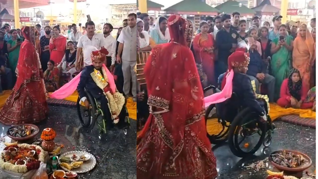 दरअसल , एक वीडियो सामने आया है, जिसमें एक दिव्यांग दूल्हा और दुल्हन को फेरे लेते हुए देखा जा सकता है. इस वायरल वीडियो में देख सकते हैं कि एक दिव्यांग दुल्हा और उसकी पत्नी नजर आ रहे हैं. शादी के बीच जब सात फेरे लेने का रस्म आता है तो उसे भी बखूबी निभाया जाता है. वीडियो में आप देख सकते हैं कि दुल्हन अपने होने वाले पति का कैसे ऐसे सहारा बनती है.