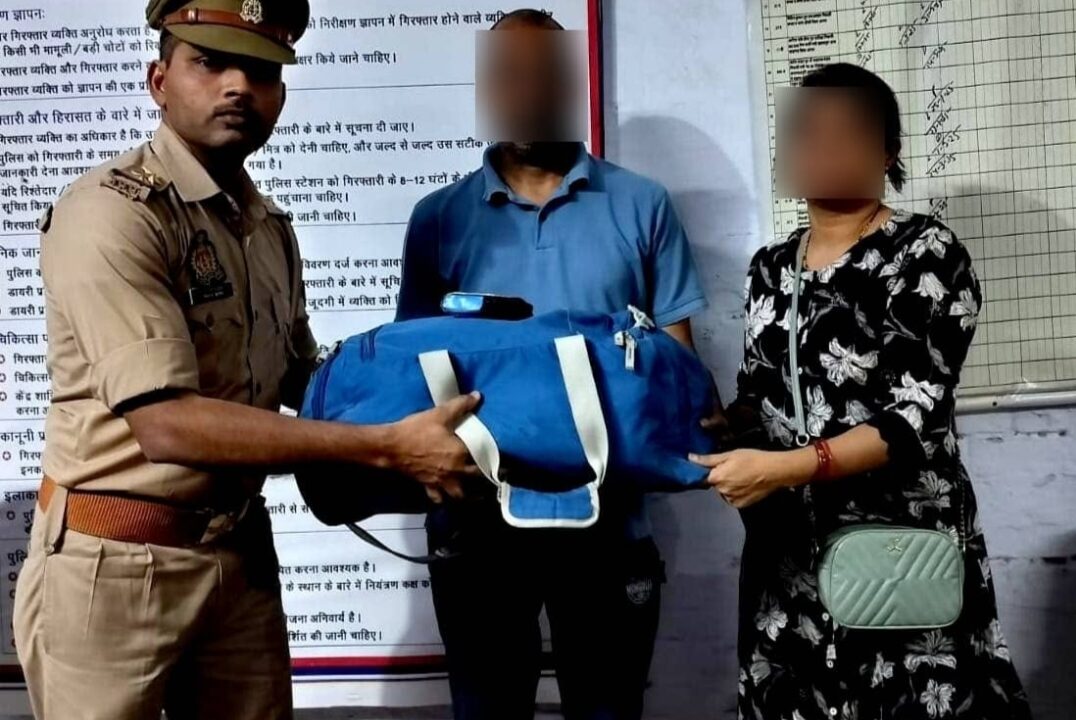आगरा। रेलयात्रियों की सुरक्षा और हर रेलयात्री को सुरक्षित उनके गंतव्य तक पहुंचाने को लेकर जीआरपी रेलवे द्वारा अपराधों और अपराधियों पर लगाम लगाने के लिए निरन्तर विशेष अभियान चलाने से अपराधियों में दहशत का माहौल बना हुआ है ।05.6.2025 को महाकौशल एक्सप्रेस में स्कोर्ट ड्यूटी मे पुलिसकर्मी हे.का. अमित कुमार व का. रवीश कुमार थे गस्त के दौरान पुलिसकर्मियों को कोच बी एक में एक लावारिश बैग मिला जिसकी सूचना तत्काल जीआरपी पुलिस कर्मियों ने प्रभारी निरीक्षक विकास सक्सेना को दी सूचना मिलते ही प्रभारी निरीक्षक ने अनहोनी की आशंका को देखते हुए तत्काल वरिष्ठ उप निरीक्षक जितेन्द्र कुमार सहित टीम गठित कर कोच मे बैठे यात्रियों को सुरक्षित कर सावधानी बरतते हुए बैग को खोला बैग मे एक सोने का मंगलसूत्र, चार सोने की अँगूठी एक सोने की नोज पिन, एक जोड़ी कान के टॉप्स सोने के, चाँदी की पायल, चाँदी के बिछुए, इस्तेमाली कपड़े व मेकअप आदि का सामान मिला बैग मे सोने चांदी के जेवरात और कपड़े मिलने पर जीआरपी पुलिस ने राहत की सांस ली। वरिष्ठ उप निरीक्षक जितेन्द्र कुमार उक्त बरामद लावारिश बैग के स्वामी की तलाश करने पर जानकारी मिली कि ज्वैलरी का बैग गाजियाबाद उत्तर प्रदेश निवासी हेमन्त पाठक का है जो कि महाकौशल एक्स. से मैहर रेलवे स्टेशन से हजरत निजामुद्दीन तक की यात्रा कर रहे थे भूलवश बैग ट्रेन मे ही छूट गया था। जीआरपी की सूचना पर हेमन्त पाठक अपनी पत्नी के साथ थाना आगरा कैण्ट पर आए तो बैग व ज्वैलरी को स्वामी दम्पत्ति के सुपुर्द किया गया । बैग पाकर दम्पत्ति की आंखों मे खुशी की झलक साफ दिखाई दे रही थी गुम हो गए बैग को पाकर दंपत्ति नम आंखों से प्रसन्नता के साथ जीआरपी पुलिस का बार बार धन्यवाद देते हुए आभार जताया। बैग बरामदग करने वाली टीम मे वरिष्ठ उप निरीक्षक जितेन्द्र कुमार थाना जीआरपी आगरा कैण्ट, हे.का.अमित कुमार थाना जीआरपी आगरा कैण्ट, का. रवीश कुमार थाना जीआरपी आगरा कैण्ट शामिल रहे।