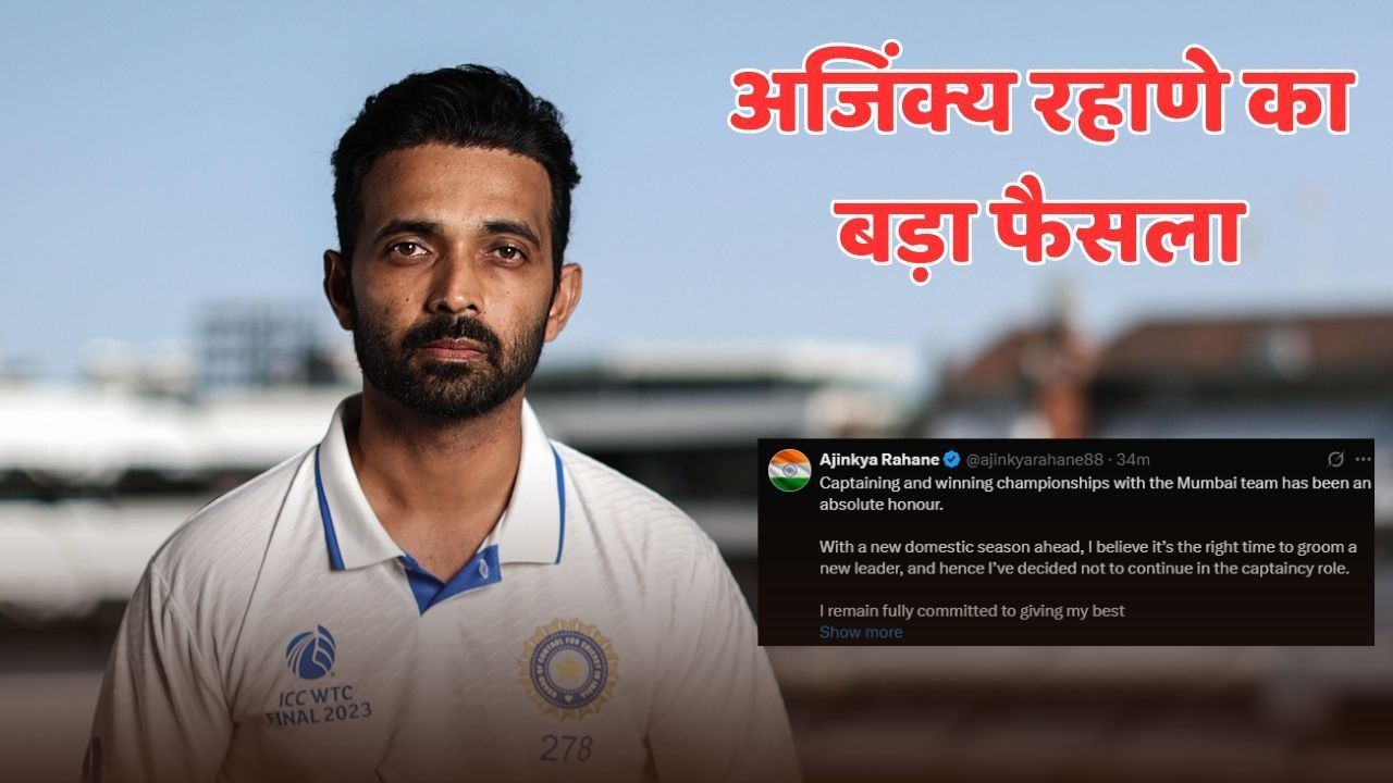 अजिंक्य रहाणे ने आगामी घरेलू सीजन से पहले कप्तानी से पीछे हटने का फैसला कर लिया है. इसके लिए उन्होंने सोशल मीडिया पर एक इमोशनल पोस्ट शेयर किया.